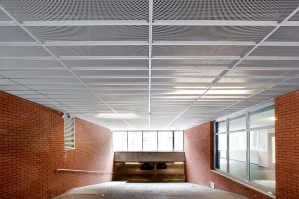 Een geperforeerd metalen plafond met een uniforme uitstraling