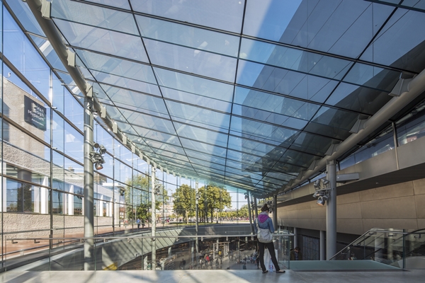 in Haarlem is een primeur in het gebruik van constructief glas. Het is de eerste zelfdragende glazen koepelconstructie zonder zichtbare staalconstructie. De vijfkantige rozetten fixeren de hoekpunten van de glaspanelen en zijn verbonden met trekstaven in de voegen waarmee de totale constructie wordt voorgespannen. Met deze voorspanning wordt voorkomen dat er trekkrachten kunnen optreden.