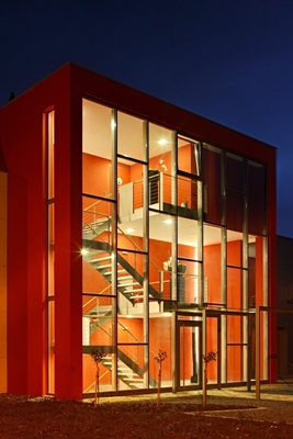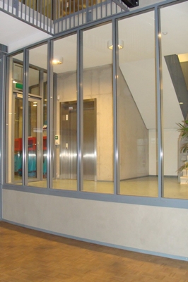 De gevel is zeer transparant dankzij de grote glasvlakken in combinatie met slanke profielen met sterke statische eigenschappen.