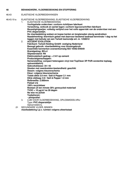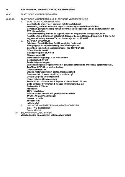 Dankzij de nieuwe constructie van de foamlaag, combineert de akoestische versie, Tapiflex Evolution, een hoge geluidsreductie (17 dB) met een minimale indrukgevoeigheid (0,08 mm volgens EN 433). Door deze nieuwe constructie en de afgestemde oppervlakte-embossing wordt de rolweerstand tot een minimum beperkt en het onderhoud sterk vereenvoudigd. De nieuwe Tapiflex Evolution draagt bij aan een comfortabele woon- en werksituatie voor de gebruikers.