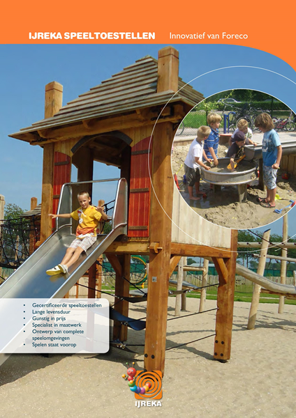 Maak kennis met het gehele IJreka assortiment speeltoestellen. Op aanvraag zenden wij u graag de diverse brochures of onze complete catalogus toe. De brochures bevatten de belangrijkste en meest voorkomende toestellen. Mede daarom is het altijd zinvol contact te zoeken met één van onze verkopers en hiermee uw wensen door te spreken, om zo te kijken of wij deze voor u kunnen invullen. Daarnaast adviseren wij u onze website te raadplegen. Doordat deze makkelijker actueel te houden is, vindt u hierop onze nieuwste toestellen.
