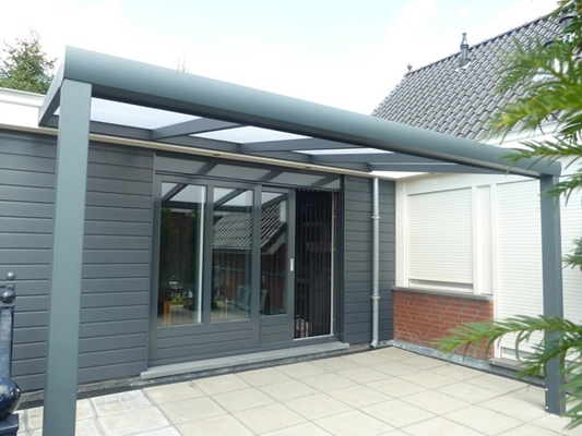 De Stanza wordt op maat voor u geproduceerd en naar wens uitgevoerd in Sepia of antraciet structuurlak of crème (overige kleuren op aanvraag). De afdekking bestaat uit een lichtdoorlatende UV-bestendige polycarbonaat. Met een maximale diepte van 3,5 meter en een maximale breedte van 7 meter, zijn de mogelijkheden legio.