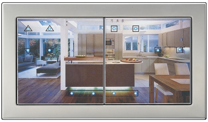 Gebruik van de sensormodule garandeert u ultieme vrijheid in ontwerp. Het front van deze schakelaar kan geheel naar wens worden voorzien van een foto van de ruimte, een overzichtelijke lijntekening of een eenvoudige tekst. Eén sensormodule heeft zestien vrij te kiezen schakelpunten, die desgewenst gegroepeerd gebruikt kunnen worden. Zo kan de centrale functie AAN/UIT kan naar wens worden opgenomen. Het voordeel is dat bijvoorbeeld bij het verlaten van de woning niet meer alle schakelpunten apart bediend hoeven te worden. Een signaaltoon bevestigd succesvolle bediening en door de fraaie ledverlichting is de sensormodule ook in het donker goed te vinden.