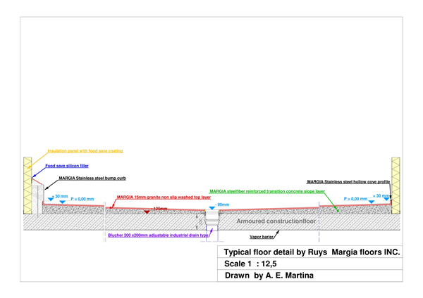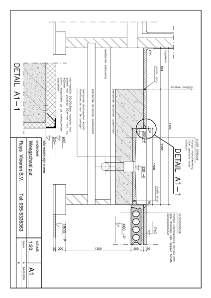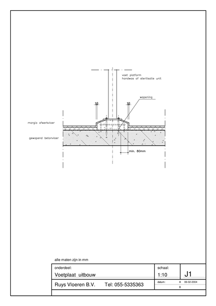 - doorsnede afschot vloer i.c.m. dekvloer, put en wandbescherming;