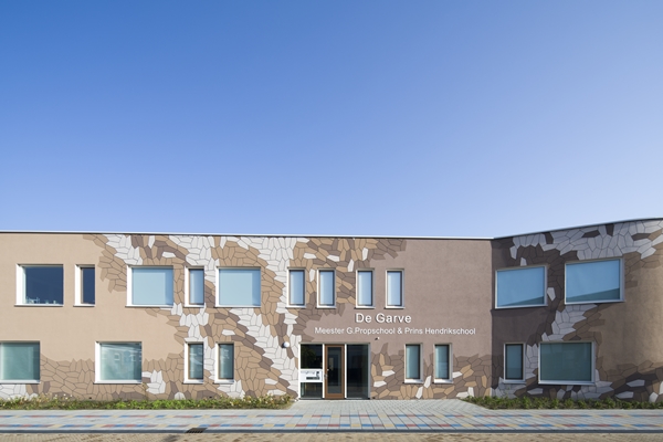 StoEcoshape in het patroon van Francine Oving op woongebouw Bentismaheerd in Groningen