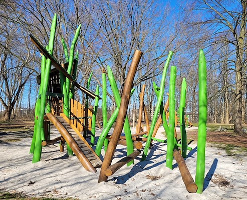 Boomhutten en ambachtelijk vervaardigde speeltoestellen