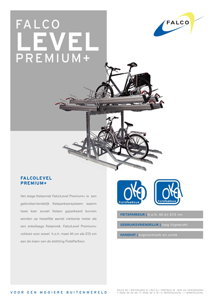 De FalcoLevel Premium+ voldoet aan de eisen van FietsParKeur voor het gebruik in de openbare ruimte en voor het gebruik in een veilige afgesloten ruimte of permanent bewaakte fietsenstalling.