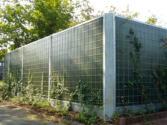 Het geluidsscherm kan optioneel worden begroeid met klimplanten.