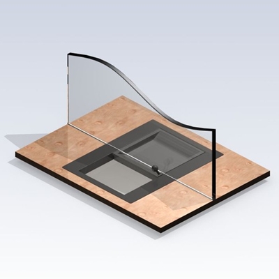 Lade van kunststof, behuizing staal. Binnenzijde betaallade en afdekrand voorzien van zwarte slijtvaste structuurlaag.
