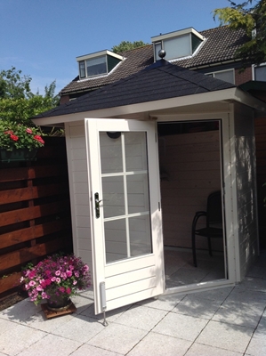 Toepassing ZE-160 Design Line deurvastzetter op deur tuinhuisje