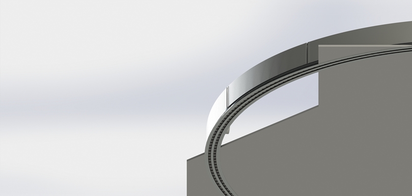 Spleetrooster met gebogen profiel (Radius>=2 m) tbv ronde plafondvormen. Het spleetrooster volgt de vorm van het plafond zodat een harmonisch geheel ontstaat.