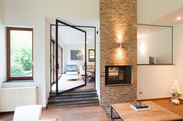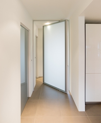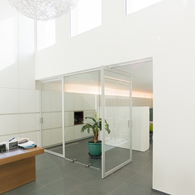 Imposante glazen taatsdeur zonder inbouwdelen in de vloer.