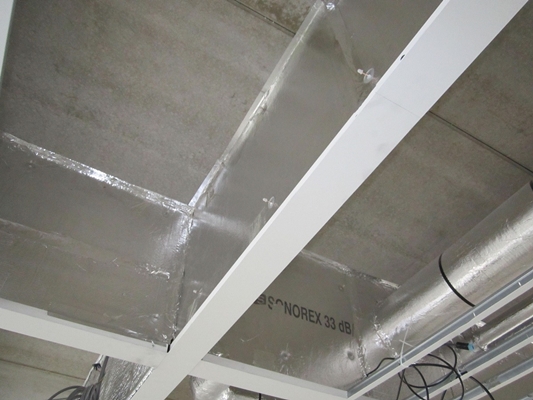 SONOREX® geluidschot boven een verlaagd plafond, inclusief doorvoering.