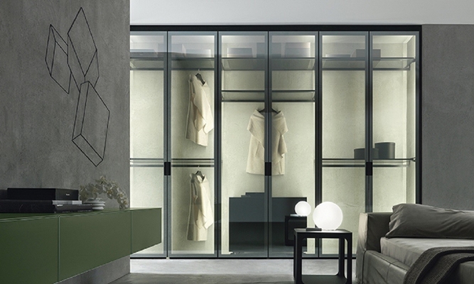 Rimadesio deuren voor kastwanden in (gelakt)glas. High end Italiaans Design.
