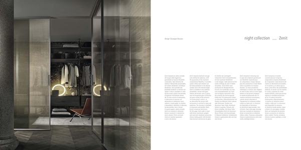 Zenit is het innovatieve walk-in closet en inloopkastensysteem door Rimadesio bedacht voor vrijwel elk gebied van de woning. Zenit wordt gekenmerkt door haar bijzondere ontwerpprincipes.