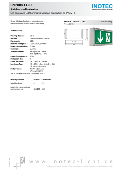 Duurzaam, kwalitatief en betrouwbaar RVS LED vluchtwegaanduiding armaturen programma o.b.v. midpower LED’s voor zowel enkel- als dubbelzijdige, (haakse) wand opbouw en pendel toepassingen. Eenvoudige installatie mogelijkheden d.m.v. schroefmontage maken de BNP 808 en BNP 828 families tevens tot een complete en aanvullende range op uw huidige oplossingsmogelijkheden.