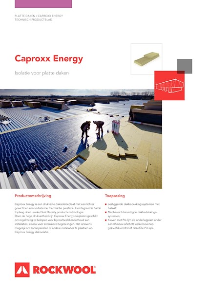 is een brandveilige steenwol isolatieplaat met een gereduceerd gewicht en een verbeterde thermische prestatie van 0,038 W/m.K. De dakplaat is voorzien van een geïntegreerde harde toplaag (gepatenteerde Dual Density productietechnologie), daardoor goed beloopbaar tijdens en nainstallatie-werkzaamheden. Dakplaat Caproxx Energy is lichter in gewicht, dus gemakkelijker te plaatsen en aan te brengen.