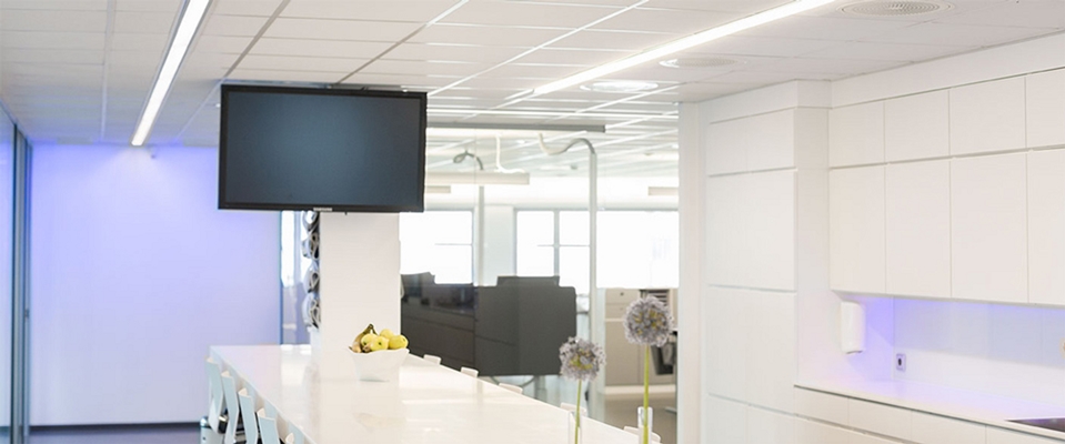 De armaturen met LED zijn tot aan de zijkant van de armatuurbehuizing verlicht, wat nog meer vrijheid biedt om met hoeken en volledig lichtgevende hoekpunten te spelen.