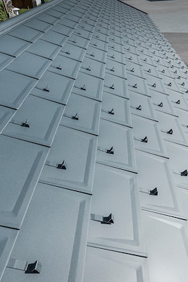 De PREFA dakpan R.16 is geschikt voor daken met een dakhelling van 17°. Hij weegt slechts 2,5 kg/m² is dus een echt lichtgewicht. De clou: doordat de pan direct aan het geïntegreerde klangprofiel wordt bevestigd, is het dak in een handomdraai gelegd.