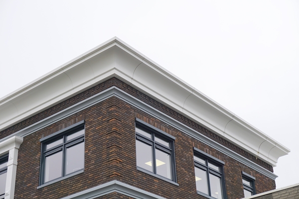 De afwerking van de dakrand is sterk bepalend voor de uitstraling van het gebouw. Maar ook is een vaakgehoorde kreet dat het geld verdiend wordt aan de binnenkant van het gebouw. Dus waarom veel geld uitgeven aan de buitenkant van het gebouw. Toch hoeft mooi en uniek niet duur te zijn. Het grote voordeel van composiet is, dat het veel vrijheid geeft in de vormgeving en dat het onderhouds arm en licht is. Dus je kunt qua vorm vrijwel altijd iets unieks creeeren zonder dat het veel hoeft te kosten.