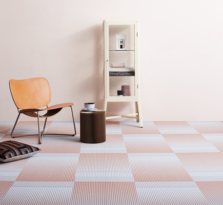 Spannende lineaire vloerontwerpen in zowel warme, neutrale kleuren als in uitgesproken heldere kleur