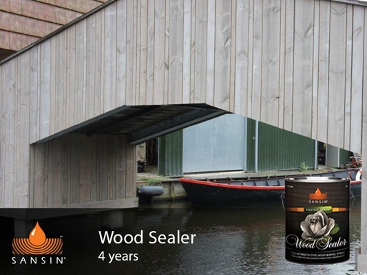 SANSIN Wood-Sealer is een watergedragen waterafstotend en vochtregulerend product dat diep in het hout doordringt, waar het zich hecht aan de houtcellen en zo een duurzame “ademende” beschermlaag vormt tegen vocht en vuilaanslag. De vochtopname in het hout wordt sterk gereduceerd waardoor de werking van het hout afneemt en de kans op scheuren en vervormen van het hout wordt verkleind. Er vindt tevens een egale vergrijzing van het houtoppervlak plaats.