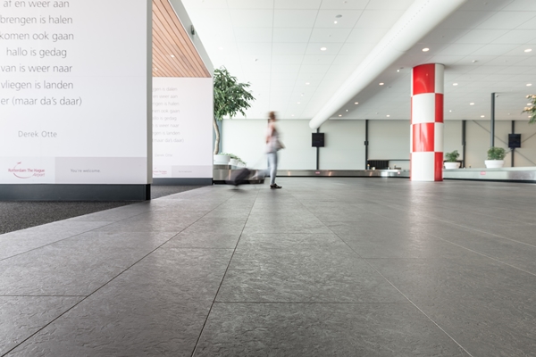 Net als alle vloerbedekkingen, is norament arago ook door en door gemaakt van rubber en overtuigt door zijn hoge slijtvastheid. Zo blijft de onberispelijke uitstraling van de rubberen tegel ook in druk bezochte ruimtes jarenlang behouden. Bovendien scoren de permanent elastische nora-vloeren ook met hun goede ergonomische en akoestische eigenschappen – een groot voordeel in gebouwen die veelvuldig door publiek worden bezocht.