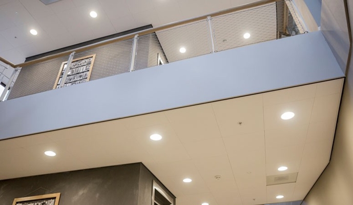Rockfon Blanka akoestische plafondplaten hebben een glad, diep mat en superwit oppervlak, in combinatie met hoge lichtreflectie en lichtdiffussie. De plafondpanelen zijn namelijk speciaal ontwikkeld om een comfortabel en zichtbaar lichtere binnenruimte te creëren. Hiermee draagt de plafondoplossing bij aan een energiebesparing tot wel 23%.