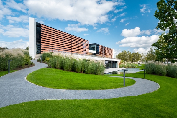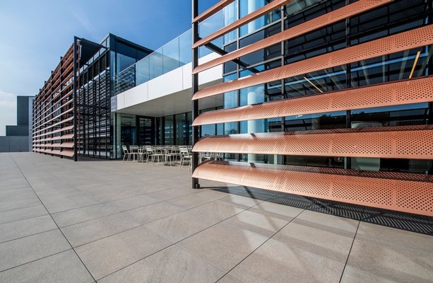 , gelegen in Grobbendonk, ontstond het idee om voor de gevel met DucoSun Wing te werken. Deze vleugelvormige lamel heeft een urban design en kan met de zon meedraaien, waardoor de inval van het licht gestuurd kan worden.