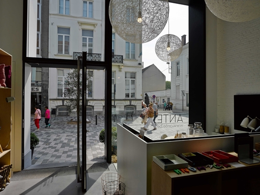 Het draaipunt bevindt zich onder en boven, waardoor de draaicirkel beperkt wordt. Verder is de deur volledig vlakliggend, waardoor deze in combinatie met moderne deurgrepen en een beperkte aanzichtbreedte zeer geschikt is als toegangsdeur voor winkels en horeca gelegenheden