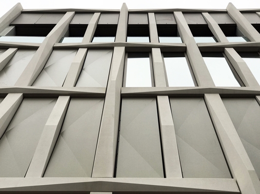 Uitgesproken gevelbekleding waarbij 3D-vormen in een paneel worden geperst
