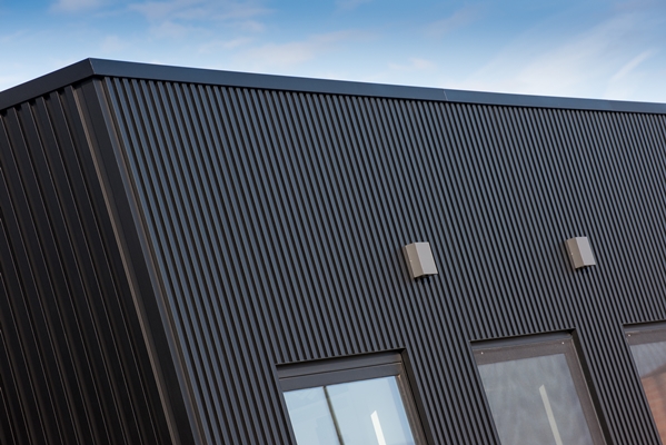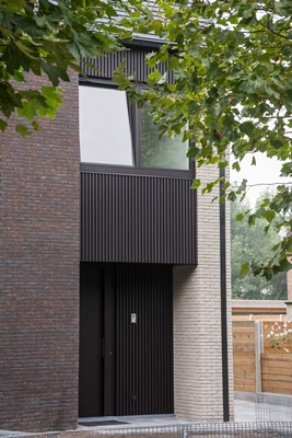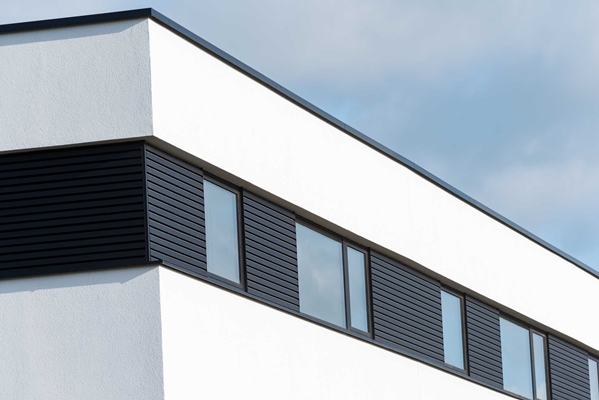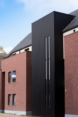 Aluminium gevelbekleding, uitgevoerd in houtlook.