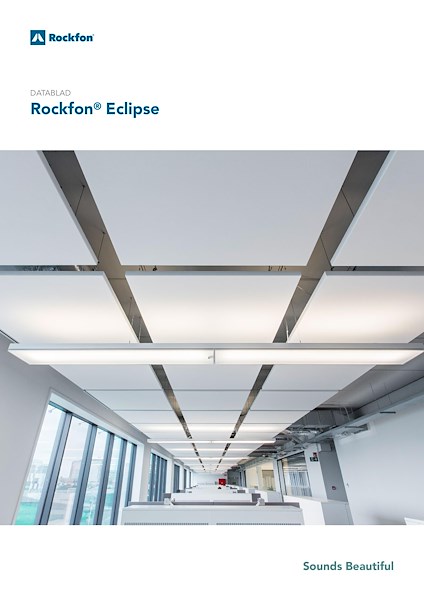 Naast gebouwen waarin het bouwkundige plafond zichtbaar blijft, kunnen de vernieuwde plafondeilanden ook worden toegepast als meer akoestisch en esthetisch fraaier alternatief voor bijvoorbeeld een niet-akoestisch plafond van gips. Ook kan Eclipse dienen als aanvulling op minder akoestische verlaagde plafonds. Dit ten behoeve van akoestische correcties. De nieuwe Eclipse is een kaderloos plafondeiland met een strakke, rechte kantafwerking. De plafondeilanden zijn verkrijgbaar in verschillende vormen en afmetingen in combinatie met een onbeperkte kleurenkeuze op basis van NCS. De standaardafmeting van een vierkant eiland is 1160 x 1160 x 40 mm. Bij een afhanghoogte van 500 mm heeft dit element een geluidsabsorptie van Aeq van 2,5 m2 per element (frequentie van 1000 Hz). 2 Op de zichtzijde van de Rockfon Eclipse is een wit mineraalvlies aangebracht voorzien van een coating met microscopisch kleine keramische deeltjes. Deze afwerking zorgt aan de zichtzijde voor een extreem wit oppervlak; de Lwaarde (witheidswaarde) bedraagt 94,5 conform ISO7724, gemeten op een schaal van 1 tot 100.