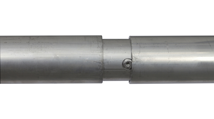 De robuuste aluminium voet waar de staander en de ligger in uitmonden
