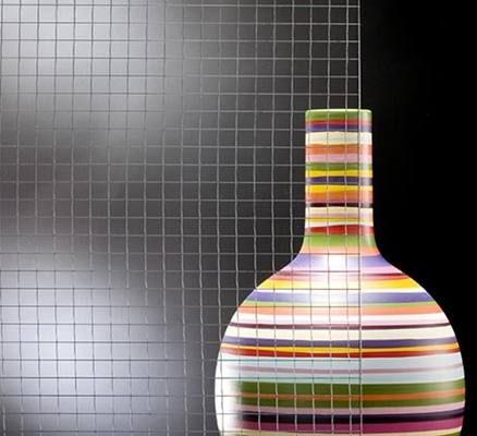 Dit blanke glas met ingebouwd metalen raster is verkrijgbaar in een dikte van 6mm en/of 7mm (afhankelijk van product) en wordt gebruikt voor decoratieve en/of architecturale toepassingen.