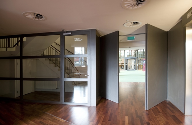 Geruisloze brand- en rookwerende deuren zonder sluitpunten