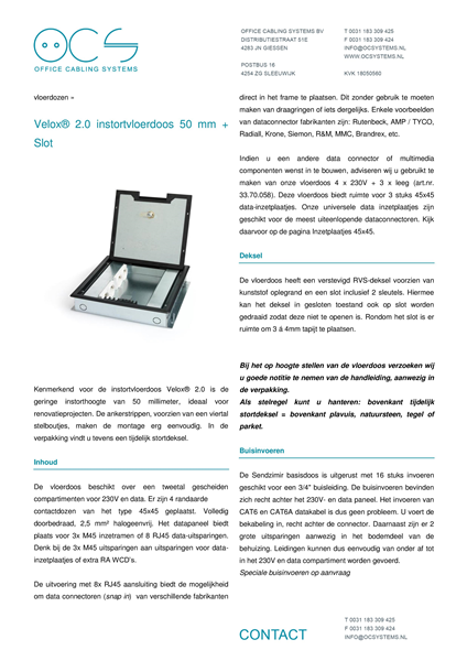 Productdocumentatie OCS VELOX® 2.0 met slot