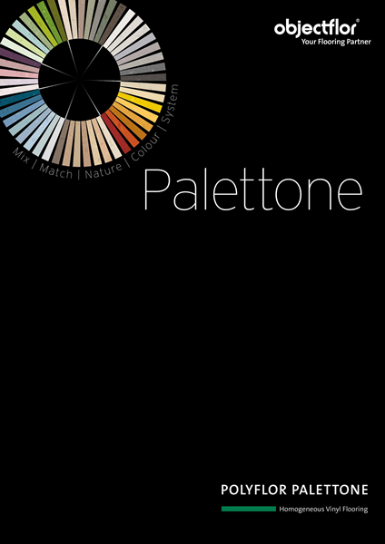 De nieuwe homogene vinylcollectie Palettone is geïnspireerd door de natuur en afgestemd op het Natural Colour System (NCS). De 50 kleuren variëren van neutraal of gedempt tot dynamisch in intensiteit. Het doordachte systeem met een eigen kleurencirkel zorgt ervoor dat alle denkbare combinaties met elkaar harmoniëren. Voor elke ontwerp is een tint of combinatie die de belevening ervan onderstreept of versterkt. Deze homogene vloer is richtingsvrij en de matte oppervlakte zorgt voor een natuurlijke uitstraling.