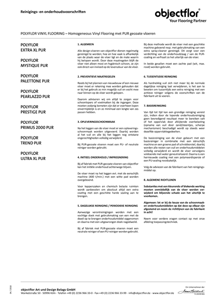 Reinigings en onderhoudsvoorschriften Palettone