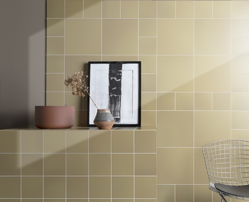 Dynamische wandtegelcollectie met op elkaar afgestemde kleuren, formaten, afwerkingen en texturen.