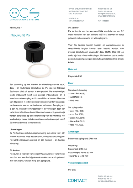 zijn via Office Cabling Systems in maar liefst 200 RAL kleuren verkrijgbaar.