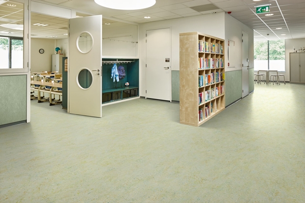 Het nieuwe CO2-neutrale Marmoleum Marbled van Forbo Flooring op een school