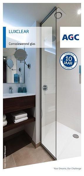 Dankzij de unieke corrosiewerende coating wordt Luxclear niet alleen optimaal beschermd tegen corrosie, maar ook tegen een doffe aanslag, witte waas, vuil en vlekken. Het glas blijft zijn hoge transparantie behouden en de bad- of doucheruimte ziet er schoon en fris uit. Dag na dag, jaar na jaar. Sterker nog: AGC biedt zelfs 10 jaar garantie tegen corrosie.