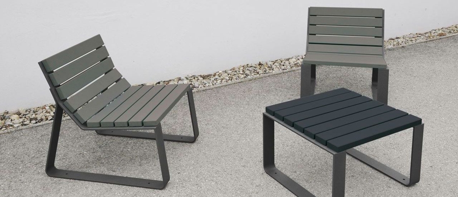 Meubilair voor de openbare ruimte van 100% gerecycled polyethyleen kunststof.