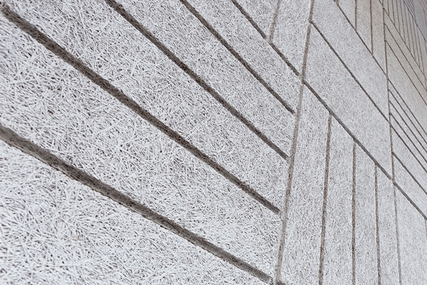 Troldtekt Tiles creëert een ontwerp met een patroon van rechthoeken die in grootte kunnen variëren.