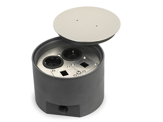 voldoen aan de hoogste eisen voor binnengebruik. De vloerdoos is uitermate geschikt voor gebruik in openbare ruimtes. Dankzij het compacte ontwerp met de hoogwaardige deksel in RVS, op wens ook in andere metalen verkrijgbaar, gaat de vloerdoos opvallend onopvallend op in ieder interieur.