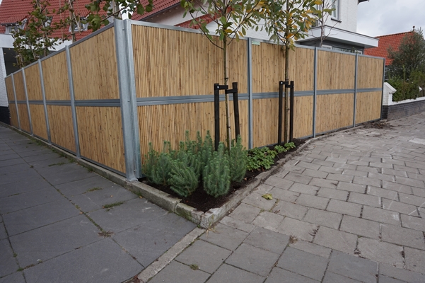 De bamboestokken zijn enigszins in het verband geplaatst waardoor de schermen nagenoeg ‘zicht-dicht’ zijn.