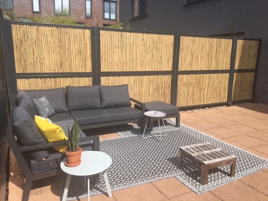 De bamboe schutting geeft elke locatie een tropisch karakter.