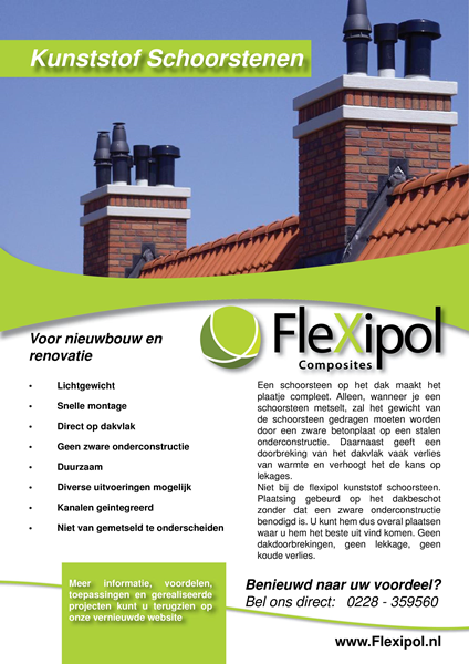 Een schoorsteen krijgt het echter over de jaren zwaar te voorduren. Het staat constant in weer en wind, waardoor deze kan gaan lekken of een verarmd beeld geeft. Opnieuw voegen / impregneren verplaatst het probleem een aantal jaren en kan voor overlaast bij bewoners zorgen. Met Flexipol schoorsteenomkledingen bent u hiervan af!