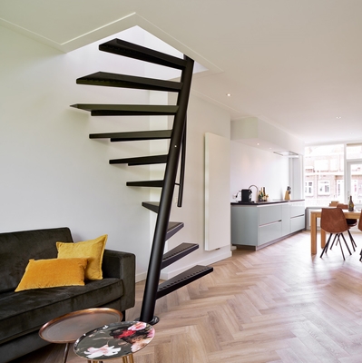 Geconfronteerd met een beperkte oppervlakte en de noodzaak om de verdieping erboven te bereiken? Dan is EeStairs® 1m2 trap de oplossing. Deze trap heeft een duidelijke focus op functionaliteit, maar heeft een ontwerp dat ook de aandacht trekt. Het is een trap die een volledige verdieping in hoogte bereikt met het gebruik van slechts één vierkante meter! Het kan met de ruimtebesparende 1m2 trap®. In de configurator kan je de 1m2 trap zelf samenstellen. Elke maat en RAL kleur is mogelijk. De prijs wordt dan ook direct zichtbaar. kijk op